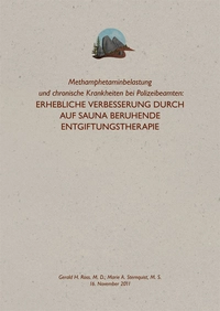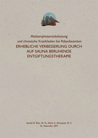 Hintergrund: Die medizinische Literatur berichtet über Gesundheitsgefährdungen für Polizeibeamte durch wiederholte Belastung mit Methamphetamin und verwandten chemischen Verbindungen. Die meisten Wirkungen erscheinen vorübergehend, aber in Utah entwickeln manche Polizeibeamte, die berufsmäßig Metamphetamin ausgesetzt sind, chronische Symptome, von denen manche zur Berufsunfähigkeit führen. Dieser Bericht handelt von einer unkontrollierten, retrospektiven medizinischen Auswertung von Aufzeichnungen über Beamte mit Symptomen, die mit einer Sauna-Entgiftungsmethode behandelt wurden; diese ist entwickelt worden, um chronische Symptome zu reduzieren und die Lebensqualität zu verbessern. Methoden: Neunundsechzig Beamte, die nacheinander zum Utah Meth Cops Projekt kamen, wurden vor und nach einem Behandlungsprogramm eingeschätzt, welches allmählich ansteigende Bewegung, umfassende Ernährungsergänzung und Saunatherapie beinhaltet. Eine 36-teilige kurze Gesundheitsbefragung (SF-36) im Vergleich mit den RAND-Bevölkerungsnormen, Benotung der Stärke von Symptomen vor und nach der Behandlung, Auswertungen bezüglich der Neurotoxizität, kurze Untersuchung des Geisteszustands, die die Häufigkeiten des Auftretens von Symptomen und eine strukturierte Auswertung der Sicherheit des Behandlungsprogramms aufzeigt. Ergebnisse: Es wurden statistisch signifikante gesundheitliche Verbesserungen bei den Auswertungen der SF-36, bei der Benotung der Symptome und bei den Auswertungen bezüglich der Neurotoxizität festgestellt. Die Entgiftungsmethode wurde gut vertragen, mit einer Abschlussrate von 92,8 %. Schlussfolgerungen: Diese Untersuchung weist eindringlich darauf hin, dass die Verwendung von Sauna und Ernährungstherapie chronische Symptome vermindern kann, die nach chemischer Belastung in Verbindung mit Methamphetamin-zusammenhängenden Strafverfolgungsaktivitäten auftreten. Dieser Bericht ist auch von Bedeutung, wenn die offensichtlich schlimmen Auswirkungen anderer komplexer chemischer Belastungen angegangen werden. In Anbetracht der positiven klinischen Ergebnisse in dieser Gruppe, erscheinen weitere Untersuchungen dieses auf Sauna beruhenden Behandlungsplans berechtigt.